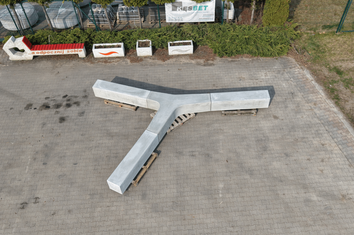 Siedzisko “Rozgwiazda” wykonane jest z wysokiej klasy betonu architektonicznego w kolorze szarym lub białym, zbrojone stalą.